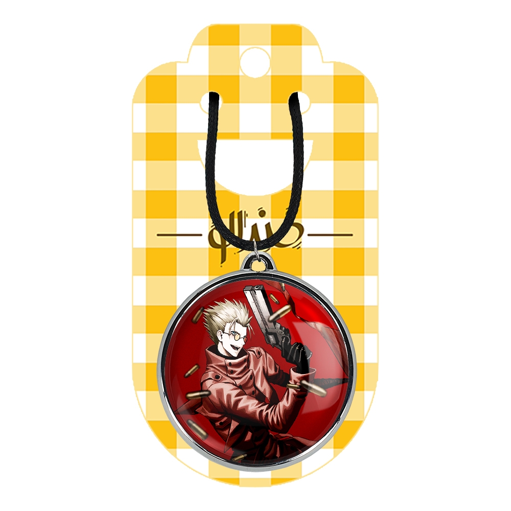 گردنبند خندالو طرح وش انیمه تریگان (Trigun)، محصولی جدید و جذاب است که بصورت دو طرفه بوده، و در هر یک از طرفین گردنبند، طرح متفاوتی از یک موضوع چاپ شده است. دور پلاک گردنبند را، رینگی از جنس کروم نقره ای پوشانده که رنگ آن ثابت بوده و باعث هرچه زیباتر شدن گردنبند می شود. روکش براق روی گردنبند، مقاومت بالایی دارد و در مقابل عرق بدن با دوام بوده و با رطوبت های کم، به طرح آسیبی وارد نمی شود. چاپ گردنبند خندالو طرح وش انیمه تریگان (Trigun) بوسیله بهترین دستگاه های چاپ دیجیتال صورت می گیرد و طرح با شفافیتی مثال زدنی بر روی گردنبند نقش می بندد.