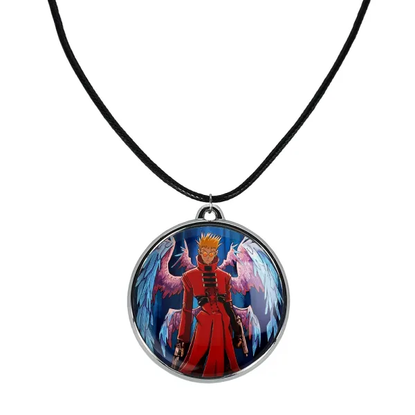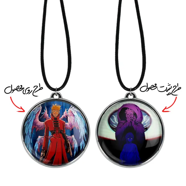 گردنبند خندالو طرح وش انیمه تریگان (Trigun)، محصولی جدید و جذاب است که بصورت دو طرفه بوده، و در هر یک از طرفین گردنبند، طرح متفاوتی از یک موضوع چاپ شده است. دور پلاک گردنبند را، رینگی از جنس کروم نقره ای پوشانده که رنگ آن ثابت بوده و باعث هرچه زیباتر شدن گردنبند می شود. روکش براق روی گردنبند، مقاومت بالایی دارد و در مقابل عرق بدن با دوام بوده و با رطوبت های کم، به طرح آسیبی وارد نمی شود. چاپ گردنبند خندالو طرح وش انیمه تریگان (Trigun) بوسیله بهترین دستگاه های چاپ دیجیتال صورت می گیرد و طرح با شفافیتی مثال زدنی بر روی گردنبند نقش می بندد.