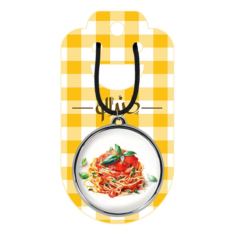 گردنبند خندالو طرح پاستا Pasta، محصولی جدید و جذاب است که بصورت دو طرفه بوده، و در هر یک از طرفین گردنبند، طرح متفاوتی از یک موضوع چاپ شده است. دور پلاک گردنبند را، رینگی از جنس کروم نقره ای پوشانده که رنگ آن ثابت بوده و باعث هرچه زیباتر شدن گردنبند می شود. روکش براق روی گردنبند، مقاومت بالایی دارد و در مقابل عرق بدن با دوام بوده و با رطوبت های کم، به طرح آسیبی وارد نمی شود. چاپ گردنبند خندالو طرح پاستا Pasta بوسیله بهترین دستگاه های چاپ دیجیتال صورت می گیرد و طرح با شفافیتی مثال زدنی بر روی گردنبند نقش می بندد. جنس بند گردنبند ها نیز تولید شده از چرم صنعتی ست و با ضخامت و مقاومت بالایی که دارد آسیبی نمی بیند. زنجیر بوسیله قفل آبکاری شده به رنگ نقره ای، قابل باز و بسته شدن است که استفاده از آن را راحت تر می کند. همچنین بسته بندی مینیمال و منحصر به فرد خندالو، گردنبند ها را تبدیل به هدیه ای جذاب می کند که با قیمت مناسب و تنوع طرحی بسیار بالایی که از همه موضوعات دارد، میتواند برای هر سلیقه ای خوشحال کننده باشد.