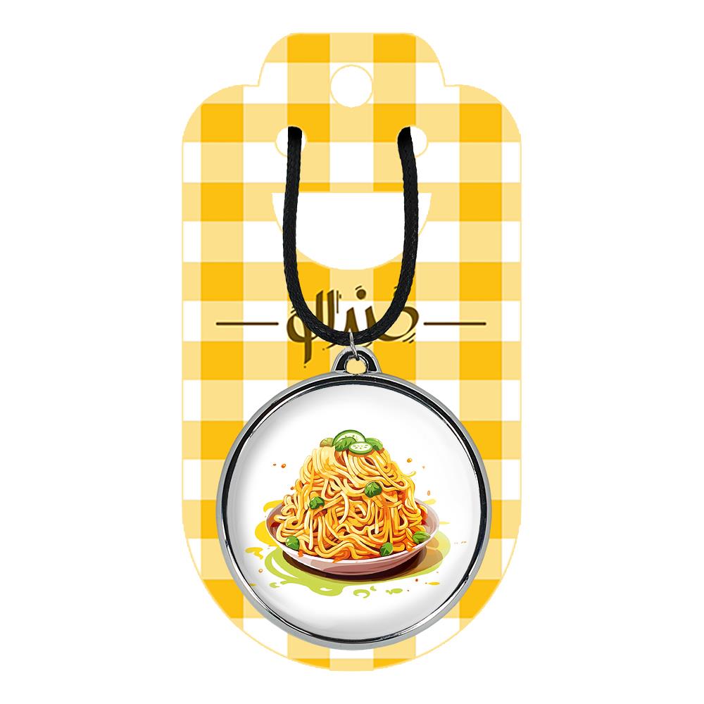 گردنبند خندالو طرح پاستا Pasta، محصولی جدید و جذاب است که بصورت دو طرفه بوده، و در هر یک از طرفین گردنبند، طرح متفاوتی از یک موضوع چاپ شده است. دور پلاک گردنبند را، رینگی از جنس کروم نقره ای پوشانده که رنگ آن ثابت بوده و باعث هرچه زیباتر شدن گردنبند می شود. روکش براق روی گردنبند، مقاومت بالایی دارد و در مقابل عرق بدن با دوام بوده و با رطوبت های کم، به طرح آسیبی وارد نمی شود. چاپ گردنبند خندالو طرح پاستا Pasta بوسیله بهترین دستگاه های چاپ دیجیتال صورت می گیرد و طرح با شفافیتی مثال زدنی بر روی گردنبند نقش می بندد.