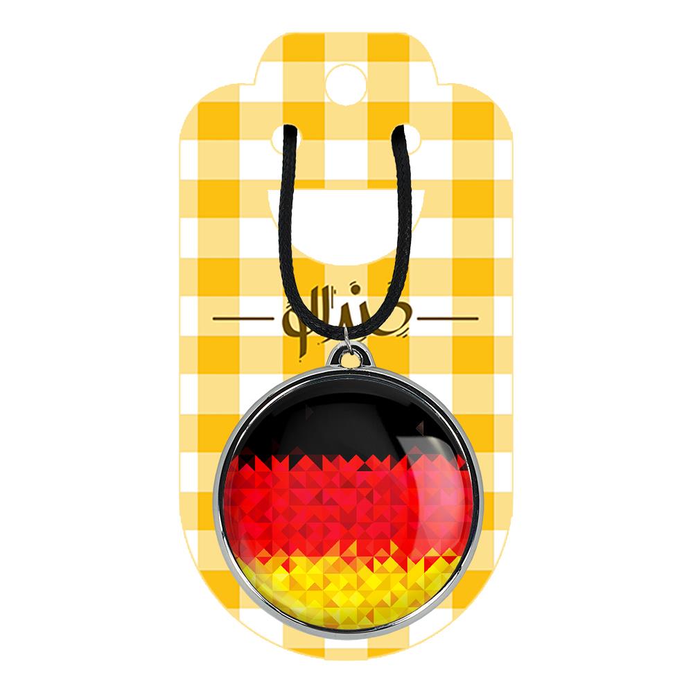 گردنبند خندالو طرح پرچم آلمان ، محصولی جدید و جذاب است که بصورت دو طرفه بوده، و در هر یک از طرفین گردنبند، طرح متفاوتی از یک موضوع چاپ شده است. دور پلاک گردنبند را، رینگی از جنس کروم نقره ای پوشانده که رنگ آن ثابت بوده و باعث هرچه زیباتر شدن گردنبند می شود. روکش براق روی گردنبند، مقاومت بالایی دارد و در مقابل عرق بدن با دوام بوده و با رطوبت های کم، به طرح آسیبی وارد نمی شود. چاپ گردنبند خندالو طرح پرچم آلمان بوسیله بهترین دستگاه های چاپ دیجیتال صورت می گیرد و طرح با شفافیتی مثال زدنی بر روی گردنبند نقش می بندد. جنس بند گردنبند ها نیز تولید شده از چرم صنعتی ست و با ضخامت و مقاومت بالایی که دارد آسیبی نمی بیند. زنجیر بوسیله قفل آبکاری شده به رنگ نقره ای، قابل باز و بسته شدن است که استفاده از آن را راحت تر می کند. همچنین بسته بندی مینیمال و منحصر به فرد خندالو، گردنبند ها را تبدیل به هدیه ای جذاب می کند که با قیمت مناسب و تنوع طرحی بسیار بالایی که از همه موضوعات دارد، میتواند برای هر سلیقه ای خوشحال کننده باشد.