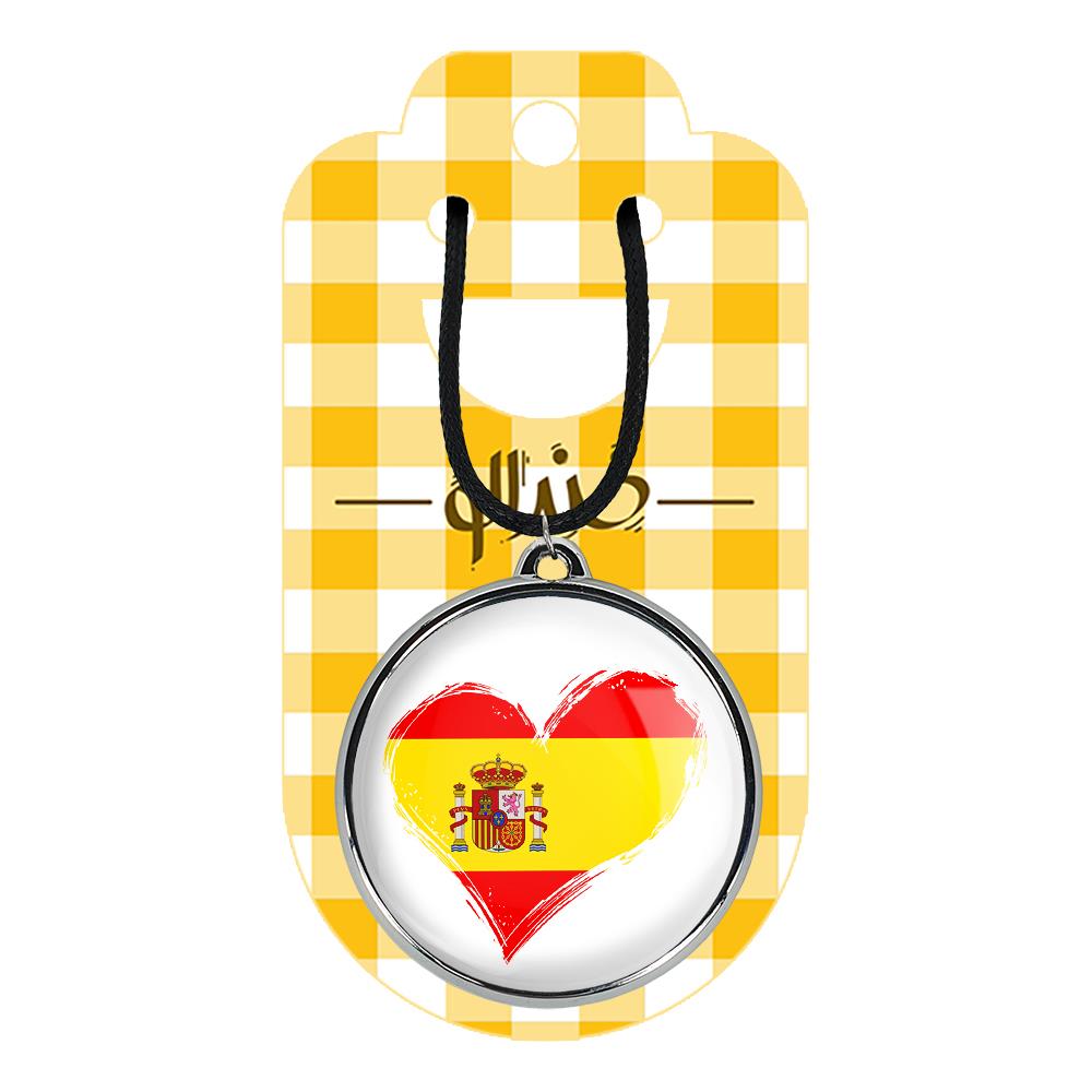 گردنبند خندالو طرح پرچم اسپانیا ، محصولی جدید و جذاب است که بصورت دو طرفه بوده، و در هر یک از طرفین گردنبند، طرح متفاوتی از یک موضوع چاپ شده است. دور پلاک گردنبند را، رینگی از جنس کروم نقره ای پوشانده که رنگ آن ثابت بوده و باعث هرچه زیباتر شدن گردنبند می شود. روکش براق روی گردنبند، مقاومت بالایی دارد و در مقابل عرق بدن با دوام بوده و با رطوبت های کم، به طرح آسیبی وارد نمی شود. چاپ گردنبند خندالو طرح پرچم اسپانیا بوسیله بهترین دستگاه های چاپ دیجیتال صورت می گیرد و طرح با شفافیتی مثال زدنی بر روی گردنبند نقش می بندد.