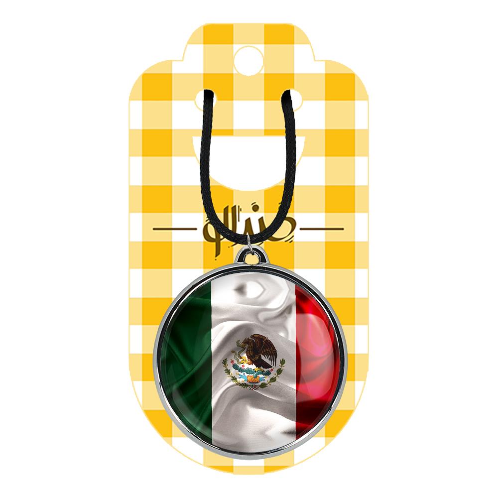 گردنبند خندالو طرح پرچم مکزیک ، محصولی جدید و جذاب است که بصورت دو طرفه بوده، و در هر یک از طرفین گردنبند، طرح متفاوتی از یک موضوع چاپ شده است. دور پلاک گردنبند را، رینگی از جنس کروم نقره ای پوشانده که رنگ آن ثابت بوده و باعث هرچه زیباتر شدن گردنبند می شود. روکش براق روی گردنبند، مقاومت بالایی دارد و در مقابل عرق بدن با دوام بوده و با رطوبت های کم، به طرح آسیبی وارد نمی شود. چاپ گردنبند خندالو طرح پرچم مکزیک بوسیله بهترین دستگاه های چاپ دیجیتال صورت می گیرد و طرح با شفافیتی مثال زدنی بر روی گردنبند نقش می بندد.