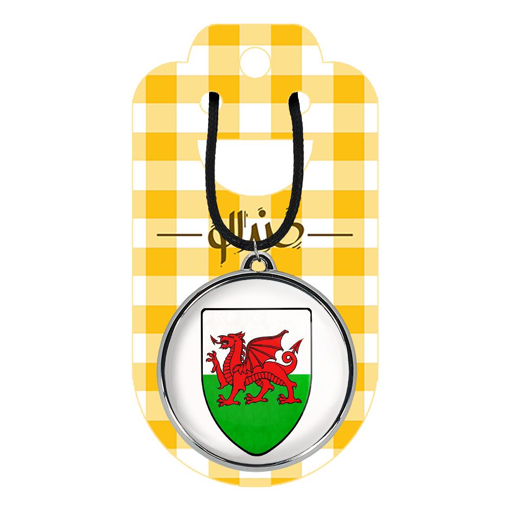 گردنبند خندالو طرح پرچم ولز ، محصولی جدید و جذاب است که بصورت دو طرفه بوده، و در هر یک از طرفین گردنبند، طرح متفاوتی از یک موضوع چاپ شده است. دور پلاک گردنبند را، رینگی از جنس کروم نقره ای پوشانده که رنگ آن ثابت بوده و باعث هرچه زیباتر شدن گردنبند می شود. روکش براق روی گردنبند، مقاومت بالایی دارد و در مقابل عرق بدن با دوام بوده و با رطوبت های کم، به طرح آسیبی وارد نمی شود. چاپ گردنبند خندالو طرح پرچم ولز بوسیله بهترین دستگاه های چاپ دیجیتال صورت می گیرد و طرح با شفافیتی مثال زدنی بر روی گردنبند نقش می بندد.
