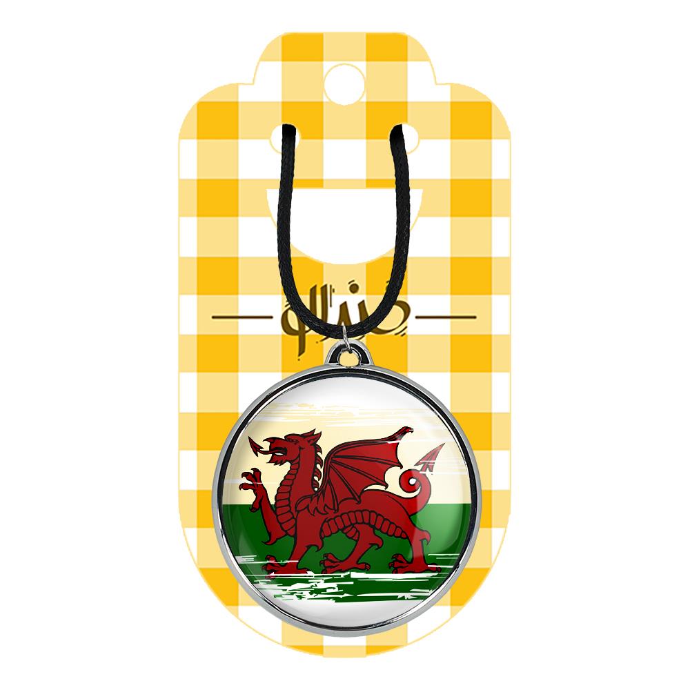 گردنبند خندالو طرح پرچم ولز ، محصولی جدید و جذاب است که بصورت دو طرفه بوده، و در هر یک از طرفین گردنبند، طرح متفاوتی از یک موضوع چاپ شده است. دور پلاک گردنبند را، رینگی از جنس کروم نقره ای پوشانده که رنگ آن ثابت بوده و باعث هرچه زیباتر شدن گردنبند می شود. روکش براق روی گردنبند، مقاومت بالایی دارد و در مقابل عرق بدن با دوام بوده و با رطوبت های کم، به طرح آسیبی وارد نمی شود. چاپ گردنبند خندالو طرح پرچم ولز بوسیله بهترین دستگاه های چاپ دیجیتال صورت می گیرد و طرح با شفافیتی مثال زدنی بر روی گردنبند نقش می بندد.