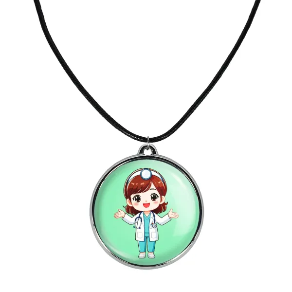 گردنبند خندالو طرح پزشک و پرستار کودکانه، محصولی جدید و جذاب است که بصورت دو طرفه بوده، و در هر یک از طرفین گردنبند، طرح متفاوتی از یک موضوع چاپ شده است. دور پلاک گردنبند را، رینگی از جنس کروم نقره ای پوشانده که رنگ آن ثابت بوده و باعث هرچه زیباتر شدن گردنبند می شود. روکش براق روی گردنبند، مقاومت بالایی دارد و در مقابل عرق بدن با دوام بوده و با رطوبت های کم، به طرح آسیبی وارد نمی شود. چاپ گردنبند خندالو طرح پزشک و پرستار کودکانه بوسیله بهترین دستگاه های چاپ دیجیتال صورت می گیرد و طرح با شفافیتی مثال زدنی بر روی گردنبند نقش می بندد.