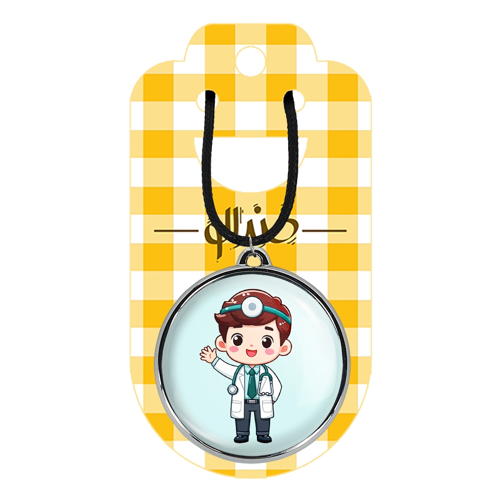 گردنبند خندالو طرح پزشک و پرستار کودکانه، محصولی جدید و جذاب است که بصورت دو طرفه بوده، و در هر یک از طرفین گردنبند، طرح متفاوتی از یک موضوع چاپ شده است. دور پلاک گردنبند را، رینگی از جنس کروم نقره ای پوشانده که رنگ آن ثابت بوده و باعث هرچه زیباتر شدن گردنبند می شود. روکش براق روی گردنبند، مقاومت بالایی دارد و در مقابل عرق بدن با دوام بوده و با رطوبت های کم، به طرح آسیبی وارد نمی شود. چاپ گردنبند خندالو طرح پزشک و پرستار کودکانه بوسیله بهترین دستگاه های چاپ دیجیتال صورت می گیرد و طرح با شفافیتی مثال زدنی بر روی گردنبند نقش می بندد.