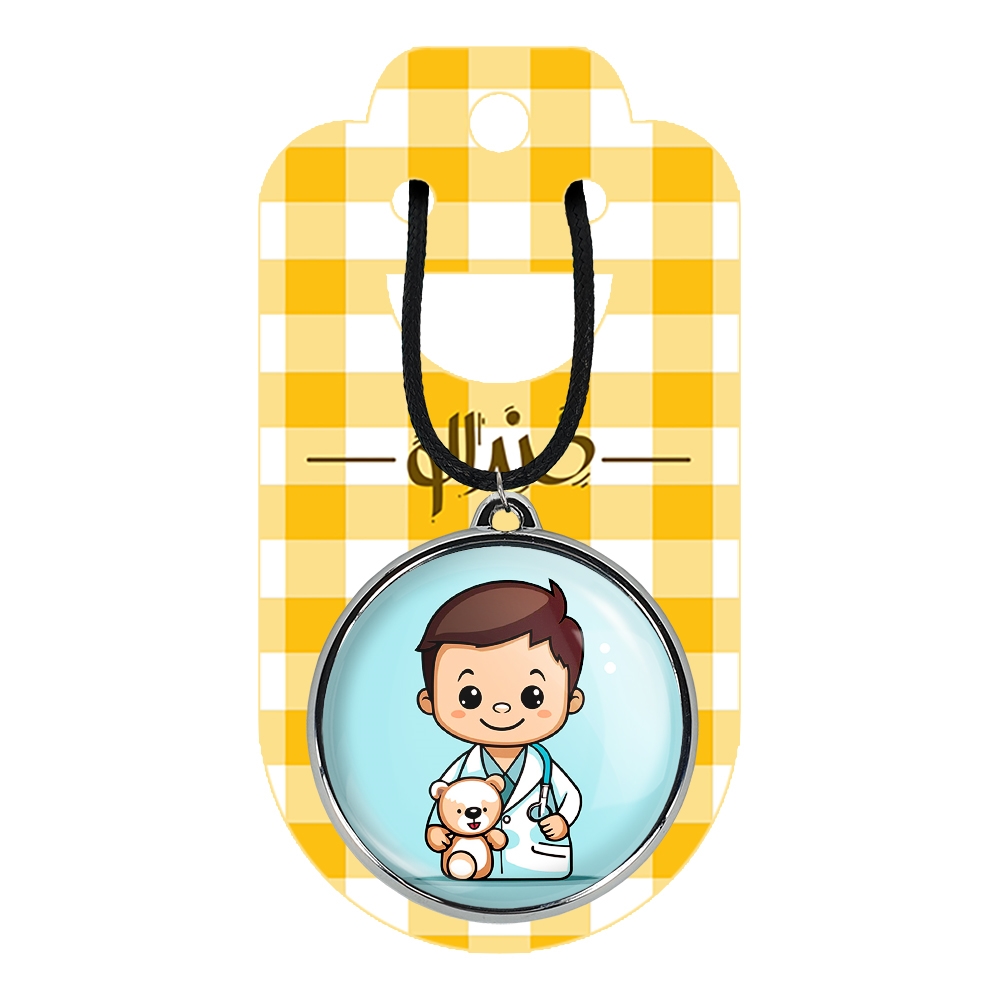 گردنبند خندالو طرح پزشک و پرستار کودکانه، محصولی جدید و جذاب است که بصورت دو طرفه بوده، و در هر یک از طرفین گردنبند، طرح متفاوتی از یک موضوع چاپ شده است. دور پلاک گردنبند را، رینگی از جنس کروم نقره ای پوشانده که رنگ آن ثابت بوده و باعث هرچه زیباتر شدن گردنبند می شود. روکش براق روی گردنبند، مقاومت بالایی دارد و در مقابل عرق بدن با دوام بوده و با رطوبت های کم، به طرح آسیبی وارد نمی شود. چاپ گردنبند خندالو طرح پزشک و پرستار کودکانه بوسیله بهترین دستگاه های چاپ دیجیتال صورت می گیرد و طرح با شفافیتی مثال زدنی بر روی گردنبند نقش می بندد.