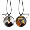 گردنبند خندالو طرح پسر انسان اثر رنه ماگریت ، محصولی جدید و جذاب است که بصورت دو طرفه بوده، و در هر یک از طرفین گردنبند، طرح متفاوتی از یک موضوع چاپ شده است. دور پلاک گردنبند را، رینگی از جنس کروم نقره ای پوشانده که رنگ آن ثابت بوده و باعث هرچه زیباتر شدن گردنبند می شود. روکش براق روی گردنبند، مقاومت بالایی دارد و در مقابل عرق بدن با دوام بوده و با رطوبت های کم، به طرح آسیبی وارد نمی شود. چاپ گردنبند خندالو طرح پسر انسان اثر رنه ماگریت بوسیله بهترین دستگاه های چاپ دیجیتال صورت می گیرد و طرح با شفافیتی مثال زدنی بر روی گردنبند نقش می بندد. جنس بند گردنبند ها نیز تولید شده از چرم صنعتی ست و با ضخامت و مقاومت بالایی که دارد آسیبی نمی بیند. زنجیر بوسیله قفل آبکاری شده به رنگ نقره ای، قابل باز و بسته شدن است که استفاده از آن را راحت تر می کند. همچنین بسته بندی مینیمال و منحصر به فرد خندالو، گردنبند ها را تبدیل به هدیه ای جذاب می کند که با قیمت مناسب و تنوع طرحی بسیار بالایی که از همه موضوعات دارد، میتواند برای هر سلیقه ای خوشحال کننده باشد.