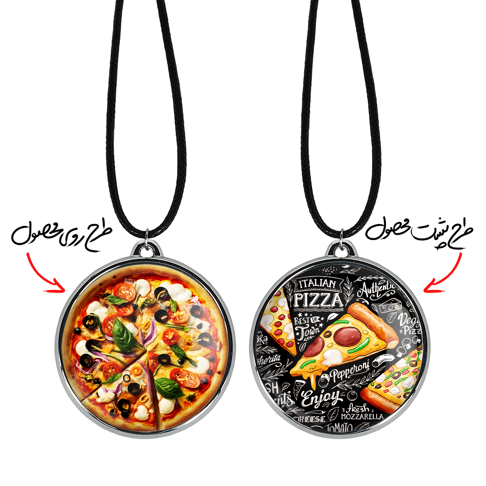 گردنبند خندالو طرح پیتزا Pizza، محصولی جدید و جذاب است که بصورت دو طرفه بوده، و در هر یک از طرفین گردنبند، طرح متفاوتی از یک موضوع چاپ شده است. دور پلاک گردنبند را، رینگی از جنس کروم نقره ای پوشانده که رنگ آن ثابت بوده و باعث هرچه زیباتر شدن گردنبند می شود. روکش براق روی گردنبند، مقاومت بالایی دارد و در مقابل عرق بدن با دوام بوده و با رطوبت های کم، به طرح آسیبی وارد نمی شود. چاپ گردنبند خندالو طرح پیتزا Pizza بوسیله بهترین دستگاه های چاپ دیجیتال صورت می گیرد و طرح با شفافیتی مثال زدنی بر روی گردنبند نقش می بندد.