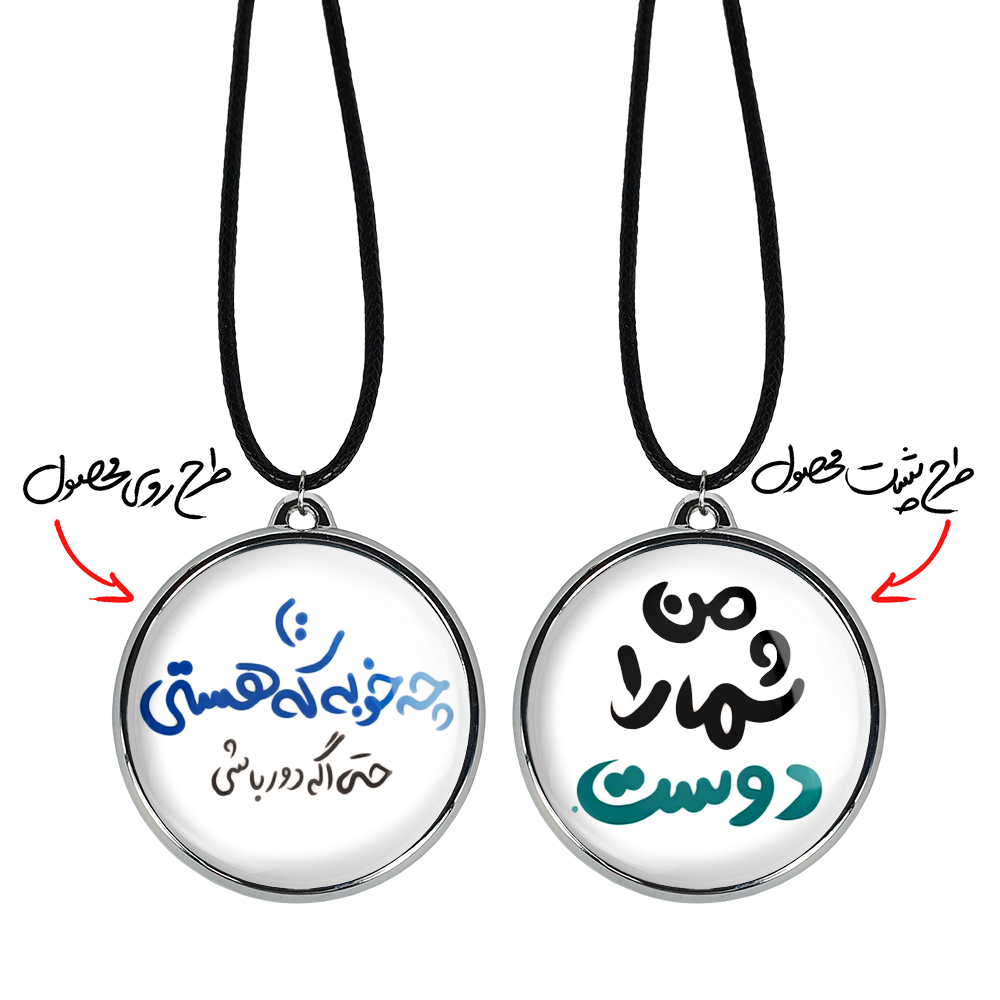 گردنبند خندالو طرح چه خوبه که هستی حتی اگر دور باشی ، محصولی جدید و جذاب است که بصورت دو طرفه بوده، و در هر یک از طرفین گردنبند، طرح متفاوتی از یک موضوع چاپ شده است. دور پلاک گردنبند را، رینگی از جنس کروم نقره ای پوشانده که رنگ آن ثابت بوده و باعث هرچه زیباتر شدن گردنبند می شود. روکش براق روی گردنبند، مقاومت بالایی دارد و در مقابل عرق بدن با دوام بوده و با رطوبت های کم، به طرح آسیبی وارد نمی شود. چاپ گردنبند خندالو طرح چه خوبه که هستی حتی اگر دور باشی بوسیله بهترین دستگاه های چاپ دیجیتال صورت می گیرد و طرح با شفافیتی مثال زدنی بر روی گردنبند نقش می بندد. جنس بند گردنبند ها نیز تولید شده از چرم صنعتی ست و با ضخامت و مقاومت بالایی که دارد آسیبی نمی بیند. زنجیر بوسیله قفل آبکاری شده به رنگ نقره ای، قابل باز و بسته شدن است که استفاده از آن را راحت تر می کند. همچنین بسته بندی مینیمال و منحصر به فرد خندالو، گردنبند ها را تبدیل به هدیه ای جذاب می کند که با قیمت مناسب و تنوع طرحی بسیار بالایی که از همه موضوعات دارد، میتواند برای هر سلیقه ای خوشحال کننده باشد.