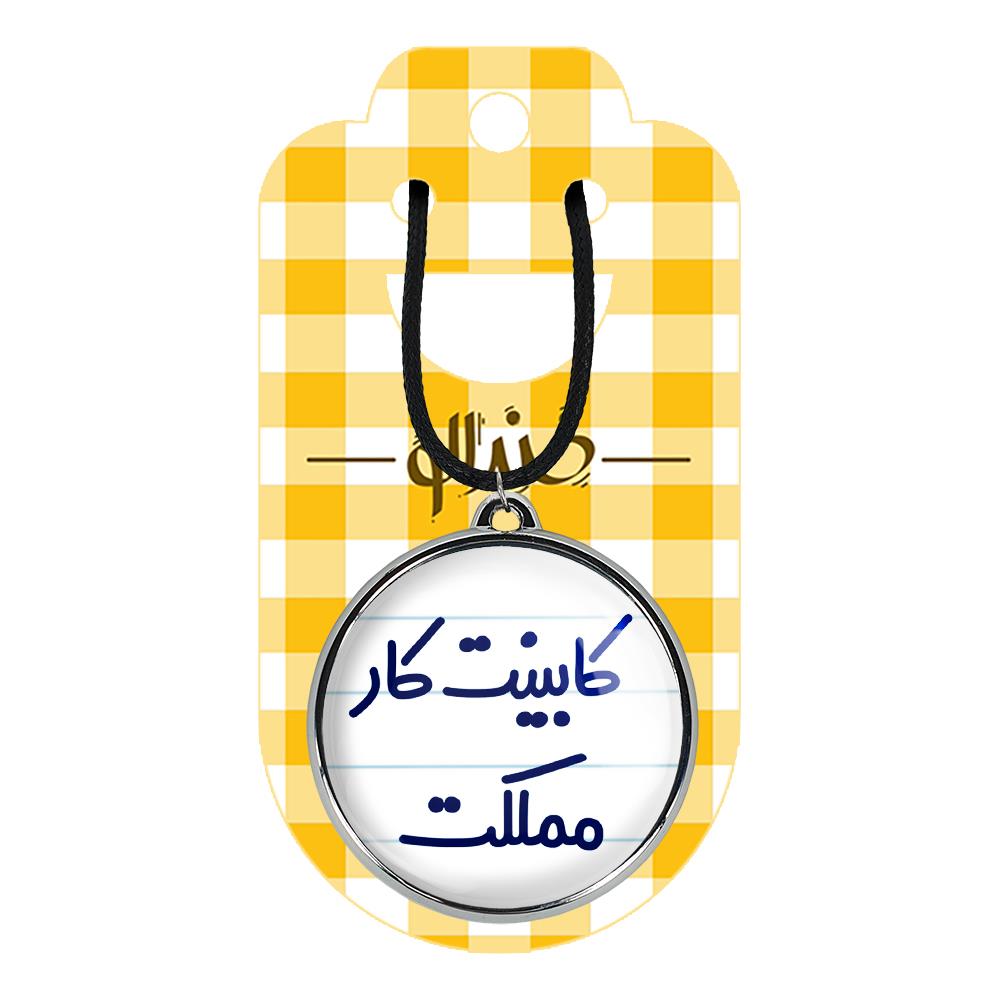 گردنبند خندالو طرح کابینت کار مملکت، محصولی جدید و جذاب است که بصورت دو طرفه بوده، و در هر یک از طرفین گردنبند، طرح متفاوتی از یک موضوع چاپ شده است. دور پلاک گردنبند را، رینگی از جنس کروم نقره ای پوشانده که رنگ آن ثابت بوده و باعث هرچه زیباتر شدن گردنبند می شود. روکش براق روی گردنبند، مقاومت بالایی دارد و در مقابل عرق بدن با دوام بوده و با رطوبت های کم، به طرح آسیبی وارد نمی شود. چاپ گردنبند خندالو طرح کابینت کار مملکت بوسیله بهترین دستگاه های چاپ دیجیتال صورت می گیرد و طرح با شفافیتی مثال زدنی بر روی گردنبند نقش می بندد. جنس بند گردنبند ها نیز تولید شده از چرم صنعتی ست و با ضخامت و مقاومت بالایی که دارد آسیبی نمی بیند. زنجیر بوسیله قفل آبکاری شده به رنگ نقره ای، قابل باز و بسته شدن است که استفاده از آن را راحت تر می کند. همچنین بسته بندی مینیمال و منحصر به فرد خندالو، گردنبند ها را تبدیل به هدیه ای جذاب می کند که با قیمت مناسب و تنوع طرحی بسیار بالایی که از همه موضوعات دارد، میتواند برای هر سلیقه ای خوشحال کننده باشد.
