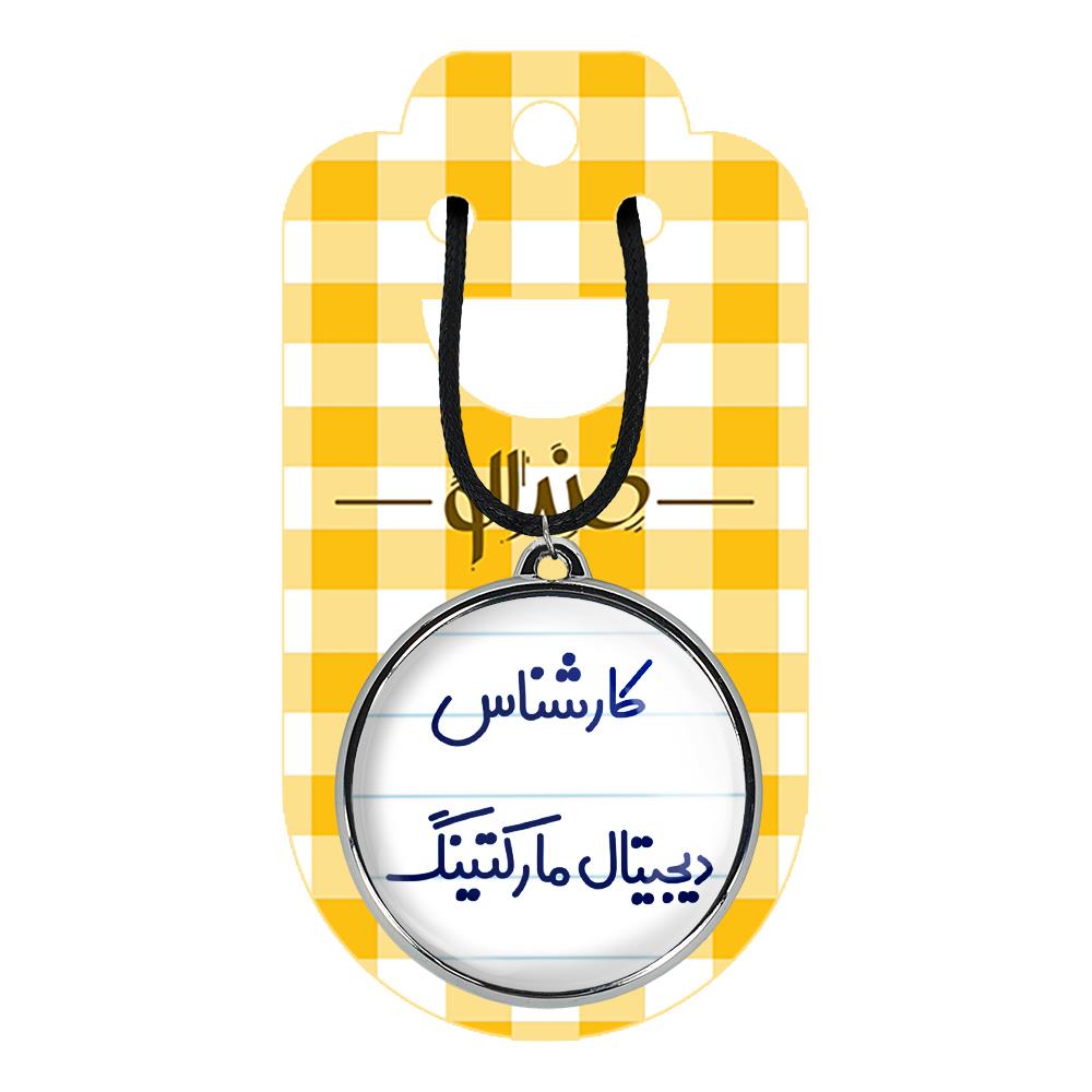 گردنبند خندالو طرح کارشناس دیجیتال مارکتینگ، محصولی جدید و جذاب است که بصورت دو طرفه بوده، و در هر یک از طرفین گردنبند، طرح متفاوتی از یک موضوع چاپ شده است. دور پلاک گردنبند را، رینگی از جنس کروم نقره ای پوشانده که رنگ آن ثابت بوده و باعث هرچه زیباتر شدن گردنبند می شود. روکش براق روی گردنبند، مقاومت بالایی دارد و در مقابل عرق بدن با دوام بوده و با رطوبت های کم، به طرح آسیبی وارد نمی شود. چاپ گردنبند خندالو طرح کارشناس دیجیتال مارکتینگ بوسیله بهترین دستگاه های چاپ دیجیتال صورت می گیرد و طرح با شفافیتی مثال زدنی بر روی گردنبند نقش می بندد. جنس بند گردنبند ها نیز تولید شده از چرم صنعتی ست و با ضخامت و مقاومت بالایی که دارد آسیبی نمی بیند. زنجیر بوسیله قفل آبکاری شده به رنگ نقره ای، قابل باز و بسته شدن است که استفاده از آن را راحت تر می کند. همچنین بسته بندی مینیمال و منحصر به فرد خندالو، گردنبند ها را تبدیل به هدیه ای جذاب می کند که با قیمت مناسب و تنوع طرحی بسیار بالایی که از همه موضوعات دارد، میتواند برای هر سلیقه ای خوشحال کننده باشد.