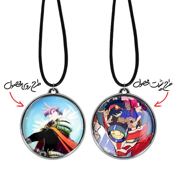 گردنبند خندالو طرح کامینا انیمه گورن لاگان، محصولی جدید و جذاب است که بصورت دو طرفه بوده، و در هر یک از طرفین گردنبند، طرح متفاوتی از یک موضوع چاپ شده است. دور پلاک گردنبند را، رینگی از جنس کروم نقره ای پوشانده که رنگ آن ثابت بوده و باعث هرچه زیباتر شدن گردنبند می شود. روکش براق روی گردنبند، مقاومت بالایی دارد و در مقابل عرق بدن با دوام بوده و با رطوبت های کم، به طرح آسیبی وارد نمی شود. چاپ گردنبند خندالو طرح کامینا انیمه گورن لاگان بوسیله بهترین دستگاه های چاپ دیجیتال صورت می گیرد و طرح با شفافیتی مثال زدنی بر روی گردنبند نقش می بندد.