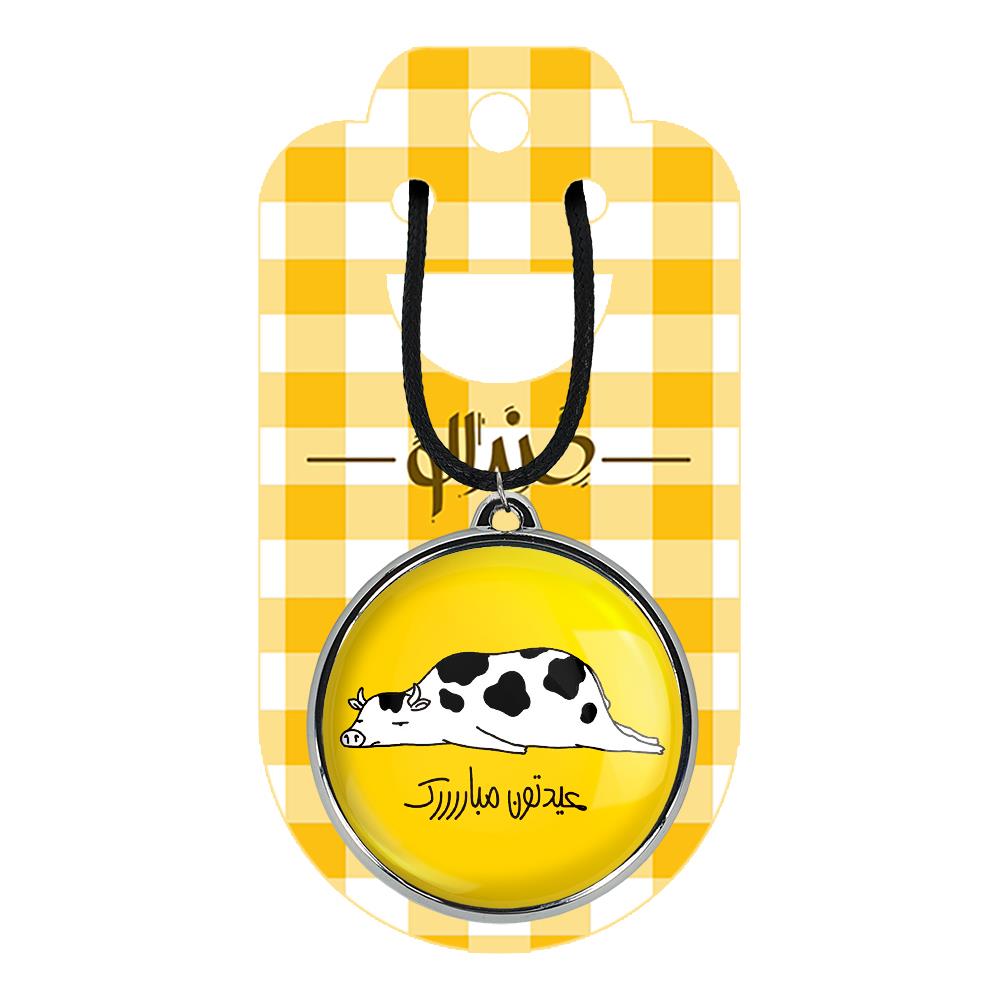 گردنبند خندالو طرح گاو ، محصولی جدید و جذاب است که بصورت دو طرفه بوده، و در هر یک از طرفین گردنبند، طرح متفاوتی از یک موضوع چاپ شده است. دور پلاک گردنبند را، رینگی از جنس کروم نقره ای پوشانده که رنگ آن ثابت بوده و باعث هرچه زیباتر شدن گردنبند می شود. روکش براق روی گردنبند، مقاومت بالایی دارد و در مقابل عرق بدن با دوام بوده و با رطوبت های کم، به طرح آسیبی وارد نمی شود. چاپ گردنبند خندالو طرح گاو بوسیله بهترین دستگاه های چاپ دیجیتال صورت می گیرد و طرح با شفافیتی مثال زدنی بر روی گردنبند نقش می بندد.