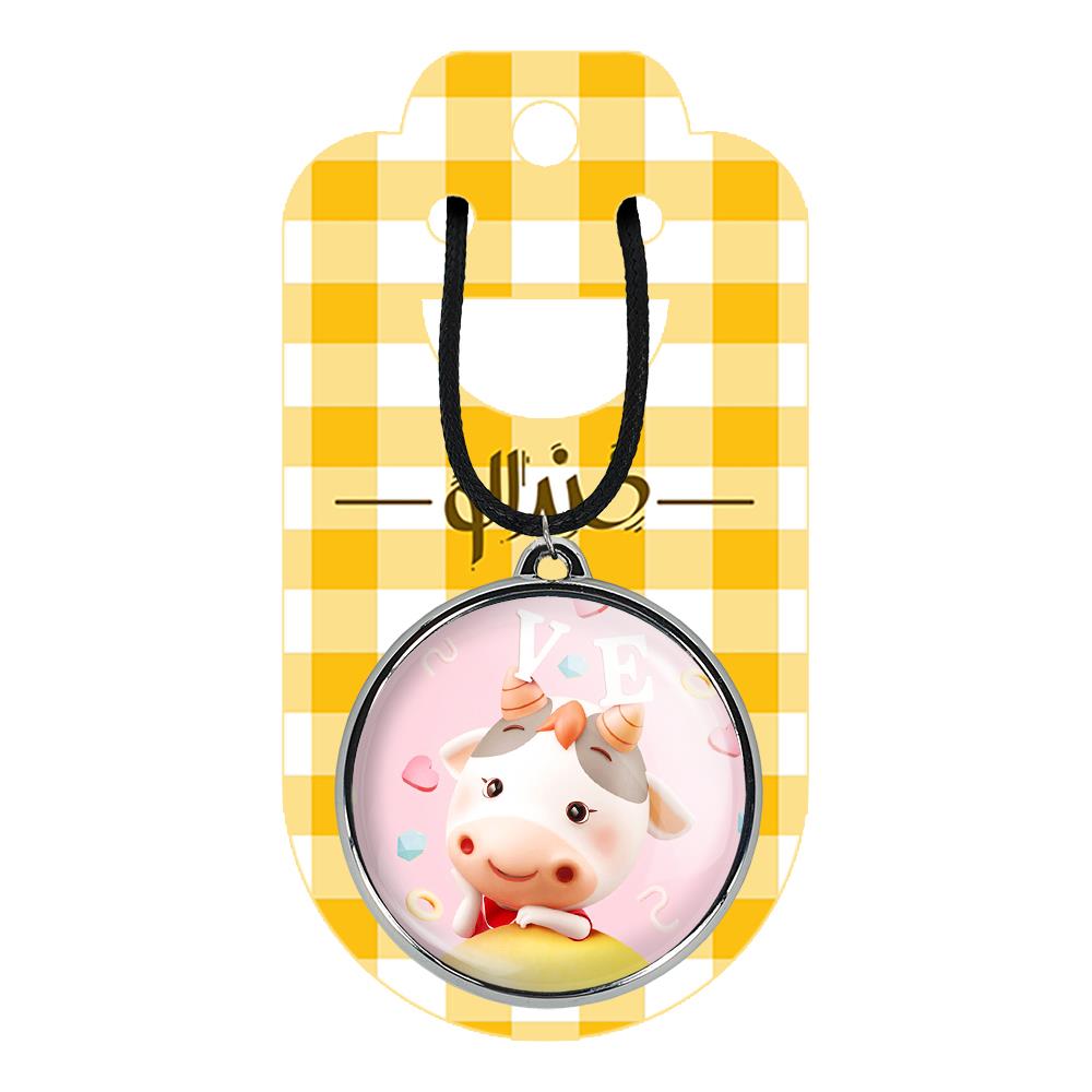 گردنبند خندالو طرح گاو ، محصولی جدید و جذاب است که بصورت دو طرفه بوده، و در هر یک از طرفین گردنبند، طرح متفاوتی از یک موضوع چاپ شده است. دور پلاک گردنبند را، رینگی از جنس کروم نقره ای پوشانده که رنگ آن ثابت بوده و باعث هرچه زیباتر شدن گردنبند می شود. روکش براق روی گردنبند، مقاومت بالایی دارد و در مقابل عرق بدن با دوام بوده و با رطوبت های کم، به طرح آسیبی وارد نمی شود. چاپ گردنبند خندالو طرح گاو بوسیله بهترین دستگاه های چاپ دیجیتال صورت می گیرد و طرح با شفافیتی مثال زدنی بر روی گردنبند نقش می بندد.