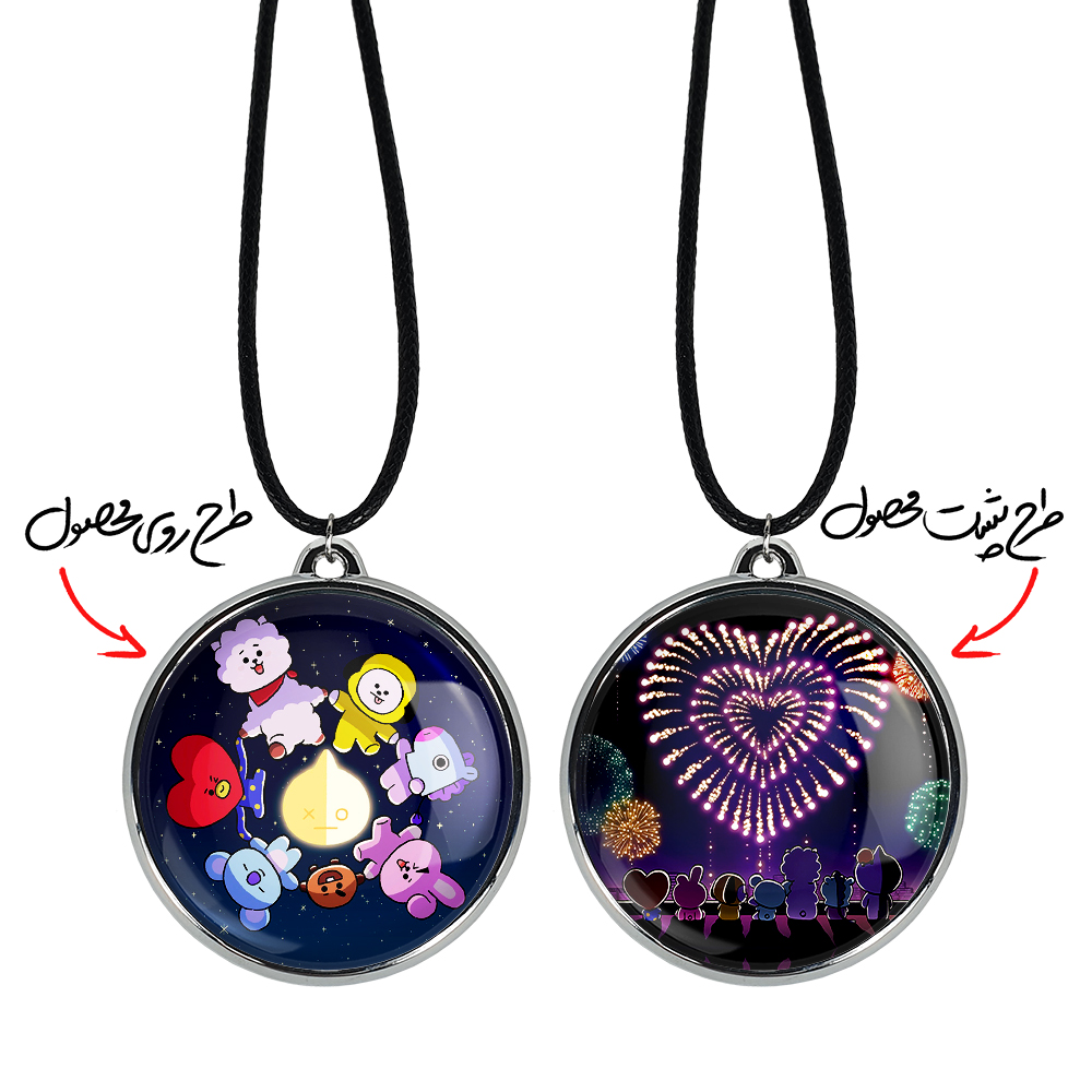 گردنبند خندالو طرح BT21 ، محصولی جدید و جذاب است که بصورت دو طرفه بوده، و در هر یک از طرفین گردنبند، طرح متفاوتی از یک موضوع چاپ شده است. دور پلاک گردنبند را، رینگی از جنس کروم نقره ای پوشانده که رنگ آن ثابت بوده و باعث هرچه زیباتر شدن گردنبند می شود. روکش براق روی گردنبند، مقاومت بالایی دارد و در مقابل عرق بدن با دوام بوده و با رطوبت های کم، به طرح آسیبی وارد نمی شود. چاپ گردنبند خندالو طرح BT21 بوسیله بهترین دستگاه های چاپ دیجیتال صورت می گیرد و طرح با شفافیتی مثال زدنی بر روی گردنبند نقش می بندد.