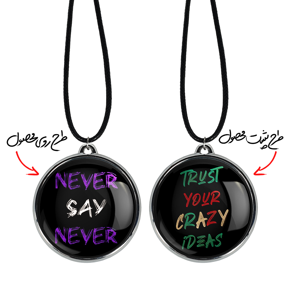 گردنبند خندالو طرح Never Say Never ، محصولی جدید و جذاب است که بصورت دو طرفه بوده، و در هر یک از طرفین گردنبند، طرح متفاوتی از یک موضوع چاپ شده است. دور پلاک گردنبند را، رینگی از جنس کروم نقره ای پوشانده که رنگ آن ثابت بوده و باعث هرچه زیباتر شدن گردنبند می شود. روکش براق روی گردنبند، مقاومت بالایی دارد و در مقابل عرق بدن با دوام بوده و با رطوبت های کم، به طرح آسیبی وارد نمی شود. چاپ گردنبند خندالو طرح Never Say Never بوسیله بهترین دستگاه های چاپ دیجیتال صورت می گیرد و طرح با شفافیتی مثال زدنی بر روی گردنبند نقش می بندد.